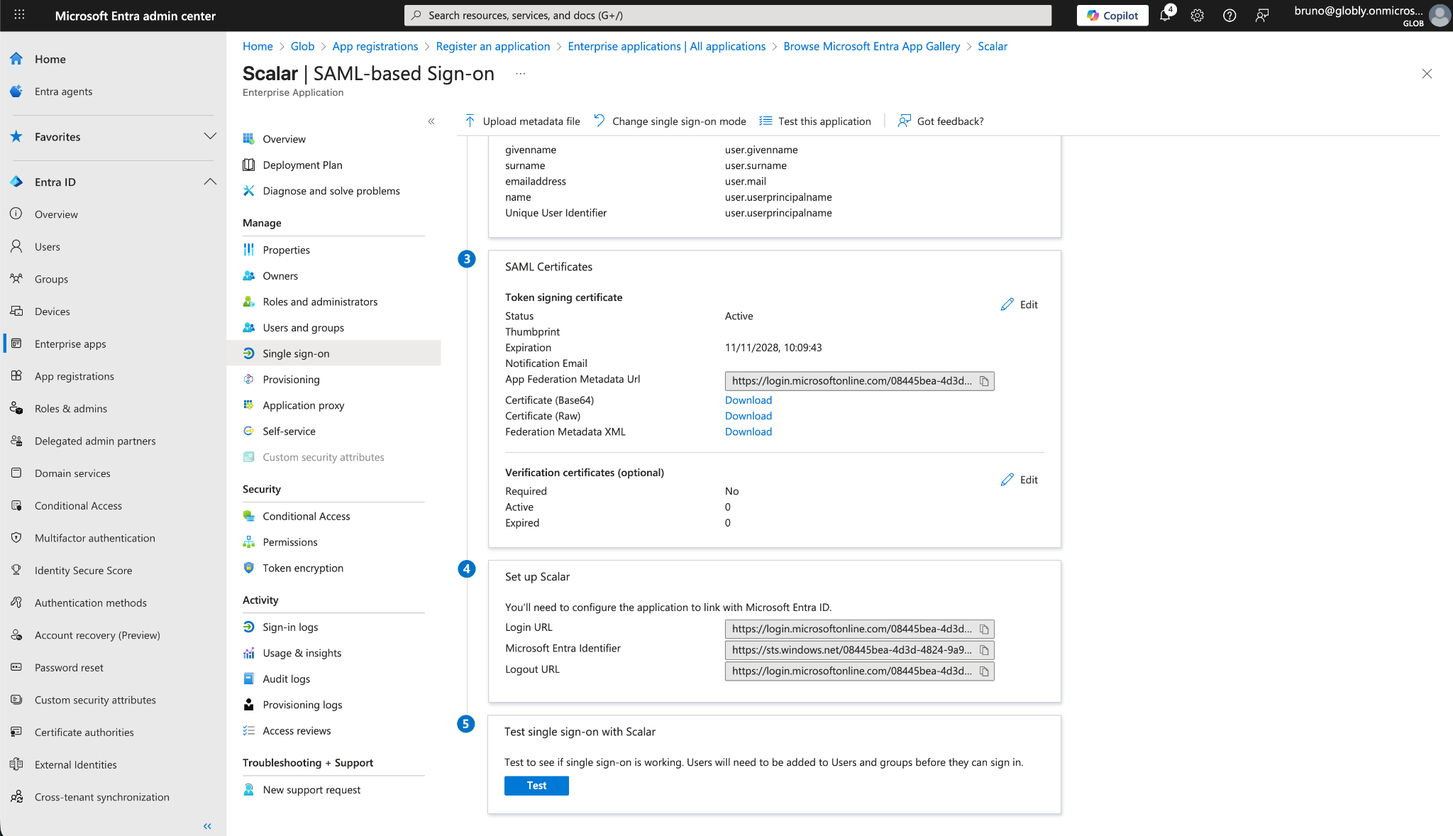 Configure SAML-based SSO between Microsoft Entra ID and Scalar.